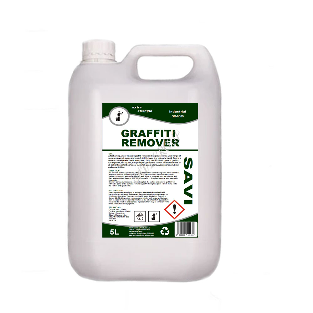 Rapidly dissolves or breaks up all forms of graffiti. The strong solvent action works on felt tip, ball point, crayon, spray paint (cellulose, acrylic or polyurethane). Floor paints and varnishes are also dissolved by the powerful action of Graffiti Remover