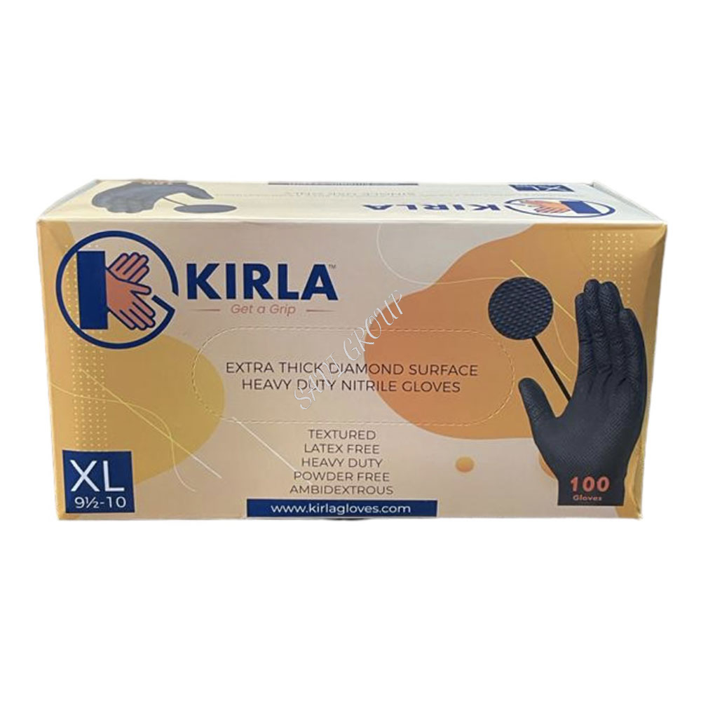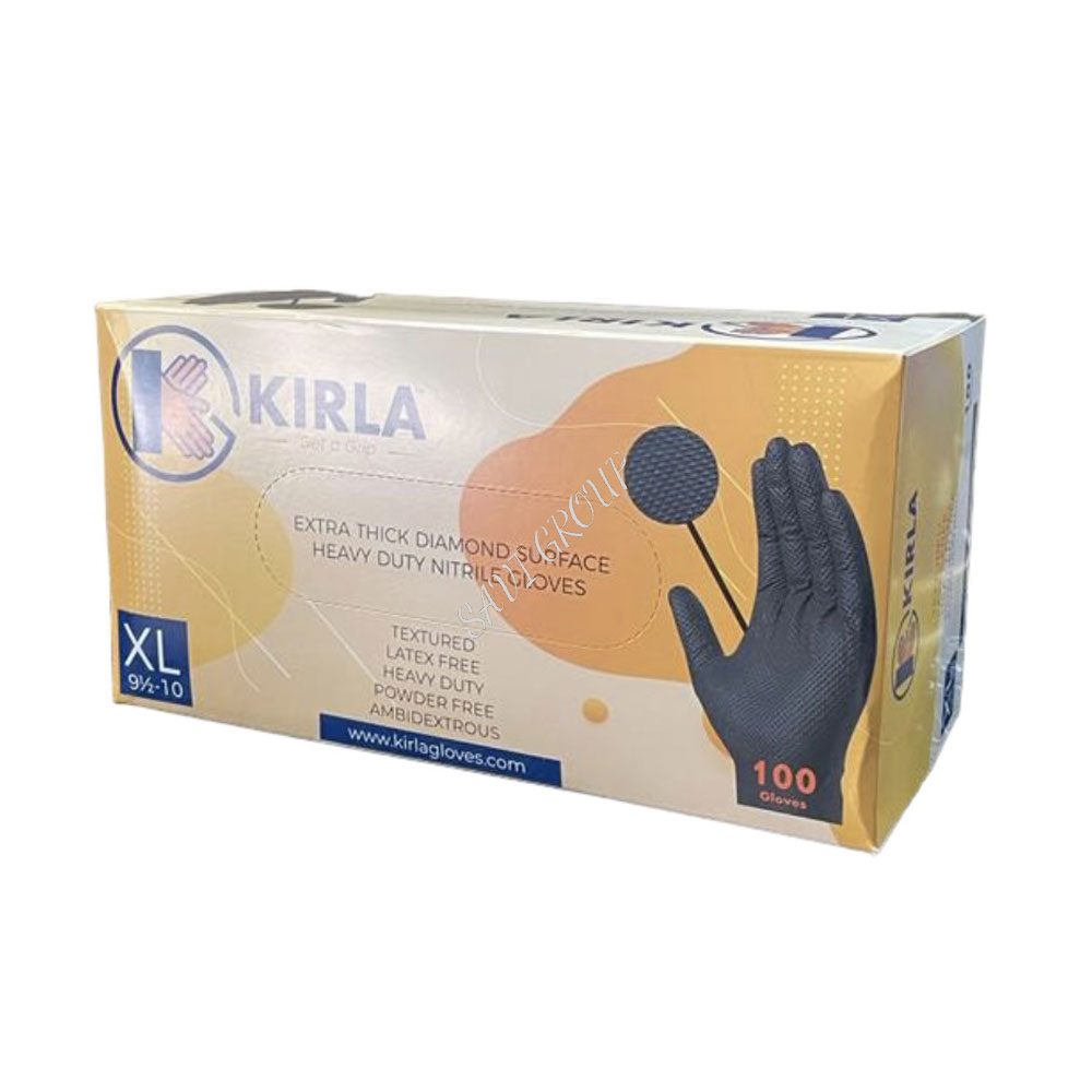 Kirla Black Nitrile Super strength high quality premium glove with greater strength and protection at the toughest jobs. With added textured grip to enhance gripping and dexterity. Resistant to most chemicals, oils and dirt so ideal for use in automotive industries.